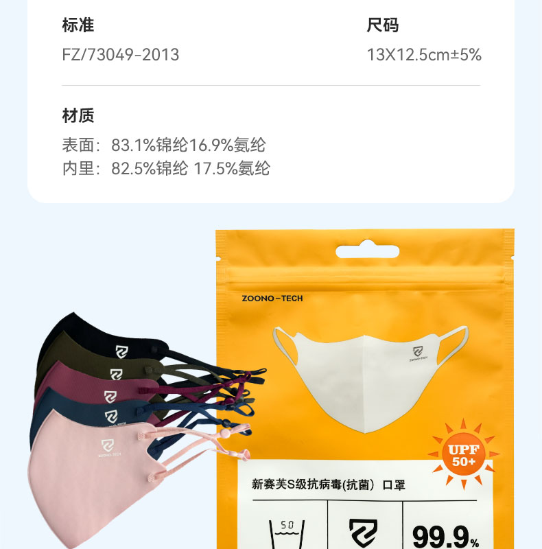 祖诺&新赛芙联名款S级升级款抗病毒(抗菌)防晒口罩 ZOONO & Xinsaifu Co-branded S-Class Upgraded Anti-Virus (Antibacterial) Sunscreen Masks