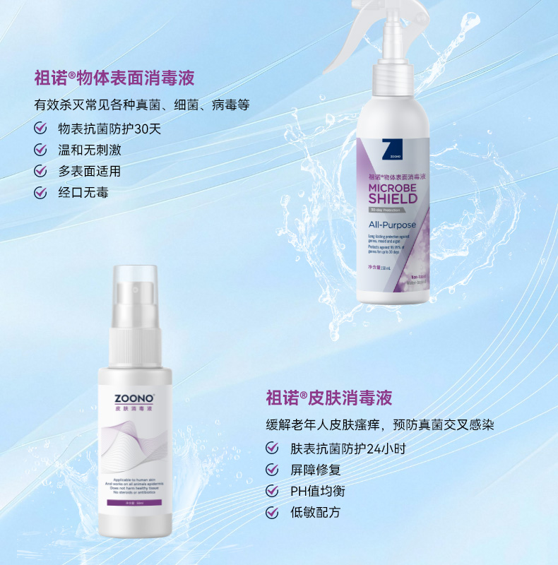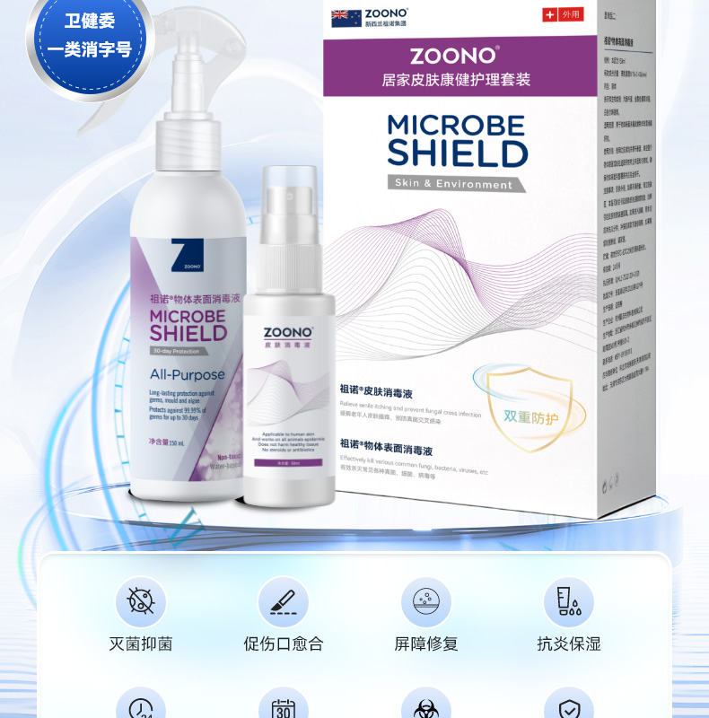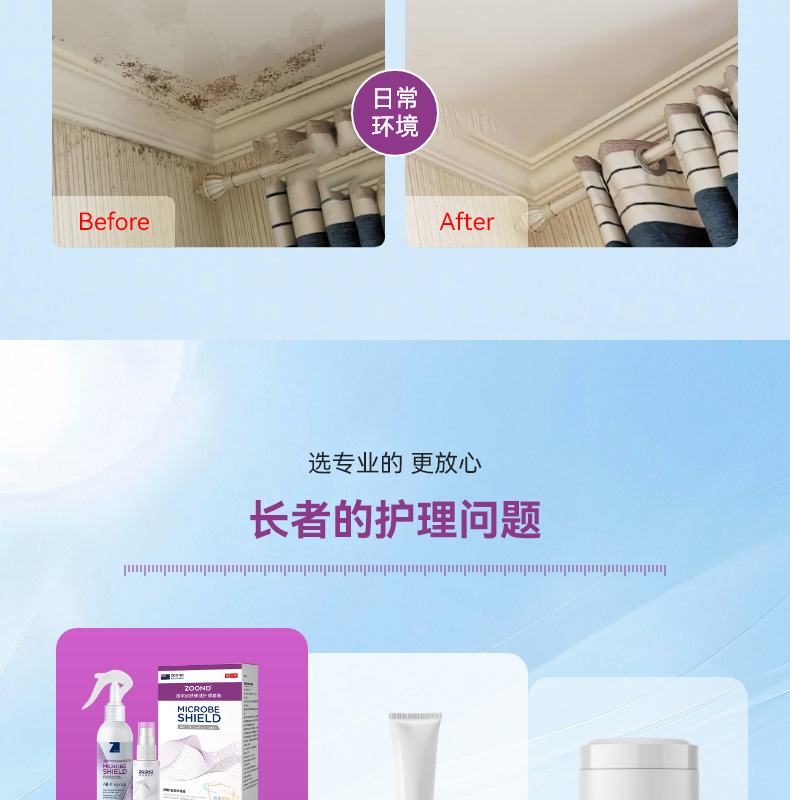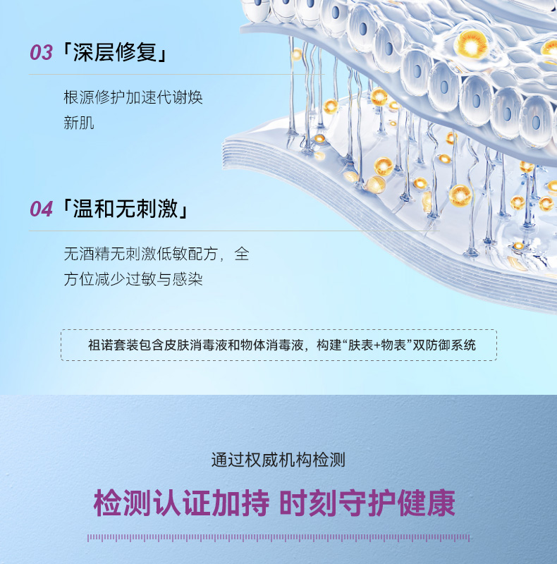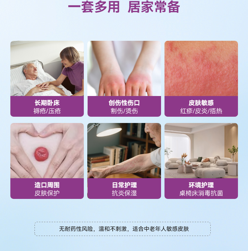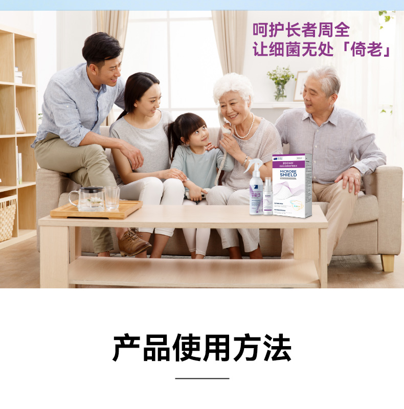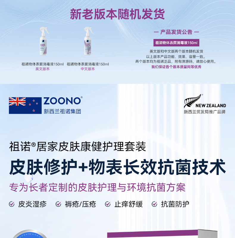 长效抗菌+皮肤修护,专为长者定制的皮肤护理与环境抗菌方案,本品为套装品,内含皮肤消毒液50ML+物体表面消毒液150ML