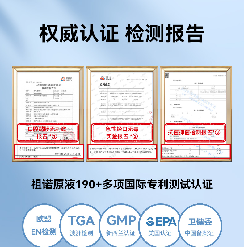 溶菌酶+祖诺分子长效抗菌技术,广谱灭菌,24小时持久抗菌,灭菌率高达99.9%,0酒精配方,温和无刺激