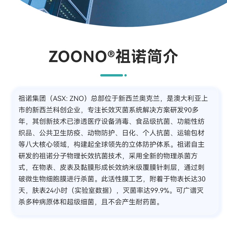 A:Zoono is 99% water-based sanitizer, our unique germ popping technology is a vital part of it. It creates a 24 hours long-lasting protective shield against 99.9% of bacteria. Safety similar as Vitamine C.