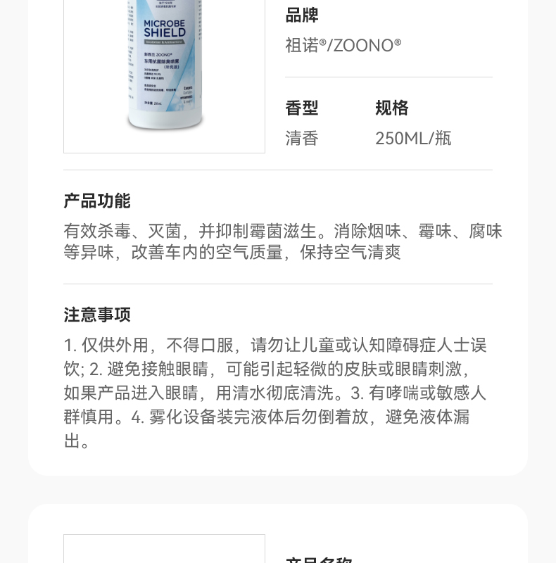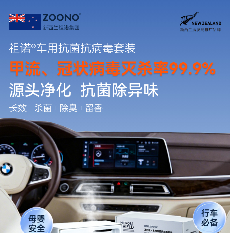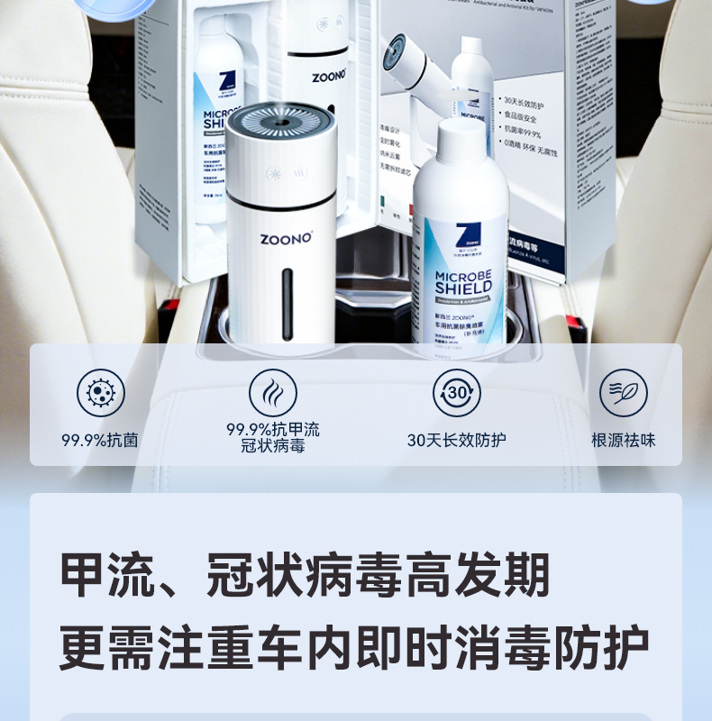 祖诺®车用抗菌抗病毒套装 ZOONO Automobile-antibacterial and antiviral kit for vehicles